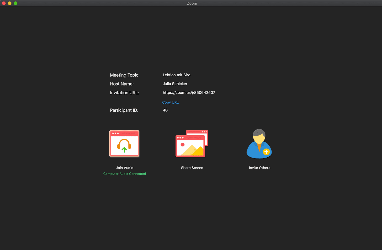 Wichtig ist im Text alles bis und mit Meeting-ID, den Rest braucht man eigentlich nicht. Den kopierten Text kannst du dann per E-Mail oder auf einem anderen Kommunikationskanal mit deinen Schüler*innen teilen.