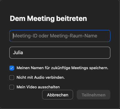 Wenn du beim Fenster angekommen bist, wo steht «Einem Meeting beitreten» hat alles funktioniert, und du bist bereit:)